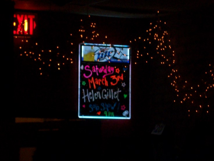 Afterwards, we headed a mere mile away to The Brick, a local rockclub and eatery. Helen Gillet, a chanteuse from New Orleans (but originally from Belgium and who I’ve written about before), is an outstanding performer. I’ve seen her do various projects in association with Mark Southerland, but never alone.