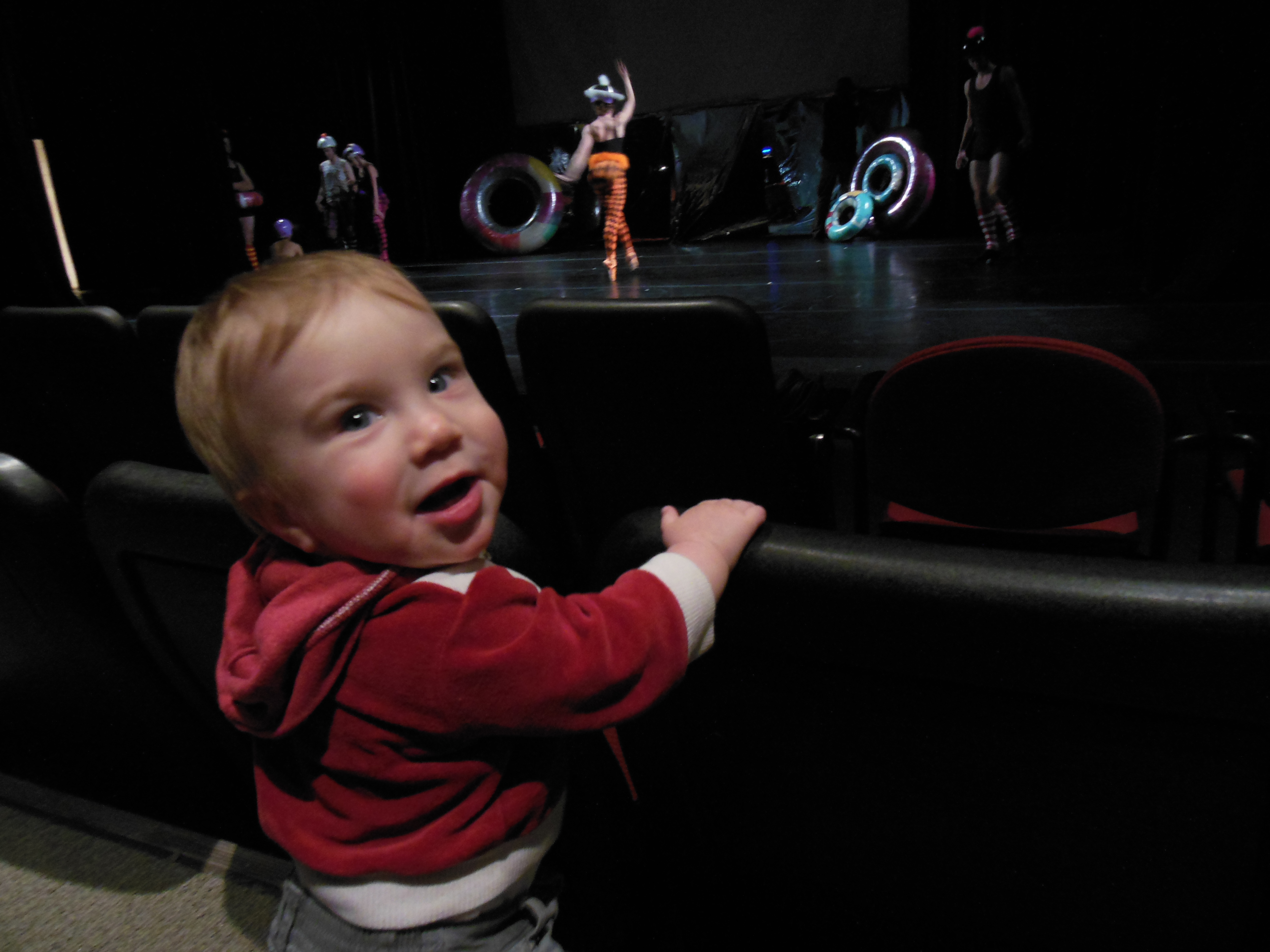 I watched part of the Owen/Cox Dance Group dress rehearsal on Thursday, since I’m unable to make any of their performances this weekend or next. Jack was with me, so I didn’t catch the first number, A Good Missouri Song, since he decided that it was more important to screech and crawl around on the floor of the lobby than let mommy get her dance on.