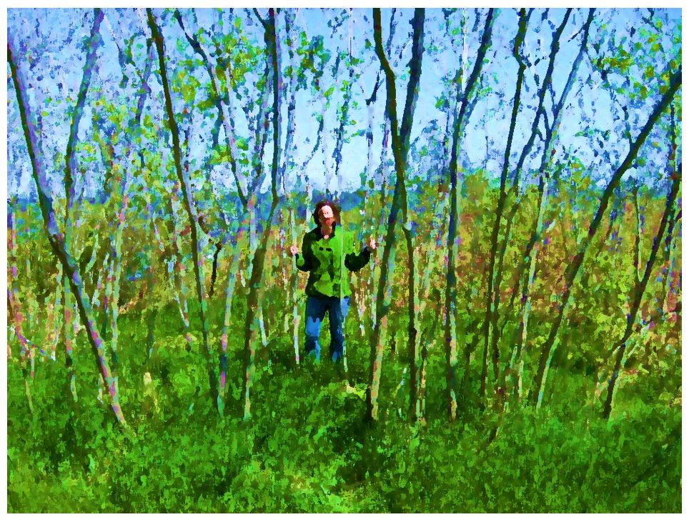 And it was brilliant: the color, the energy, the work fresh, imbued with spring time promise. The backdrops were based on plein air sketches by scenic designer/artist Adrianne Lobel that suggested forest, hills, sky, sea. Some of the drops had portions cut out so the performers could move through the vast paintings, further combining the visual elements. Michael Chybowski created the subtle yet transformative lighting design.